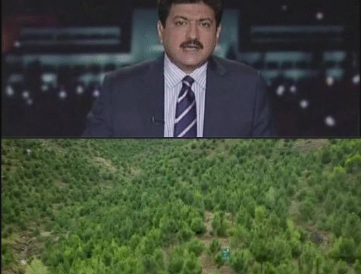 سوشل میڈیا پر وائرل ایک ویڈیو میں حامد میر کاکہناتھا کہ یہاں ایک جنگل تھا ،عمران خان دور حکومت میں بلین ٹری سونامی ایک پروجیکٹ تھا، اس کے درخت تھے یہاں پر ۔